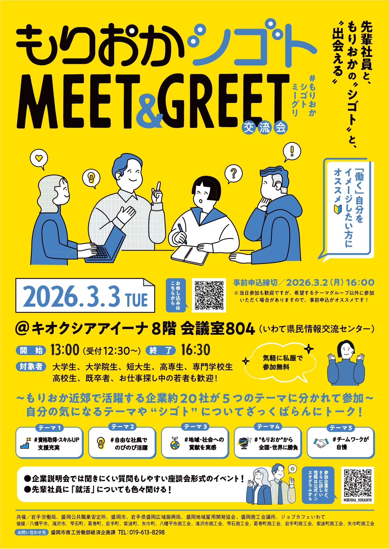 もりおかシゴトMEET&GREET (#もりおかシゴトミーグリ) 2026年3月3日(TUE)開催します!